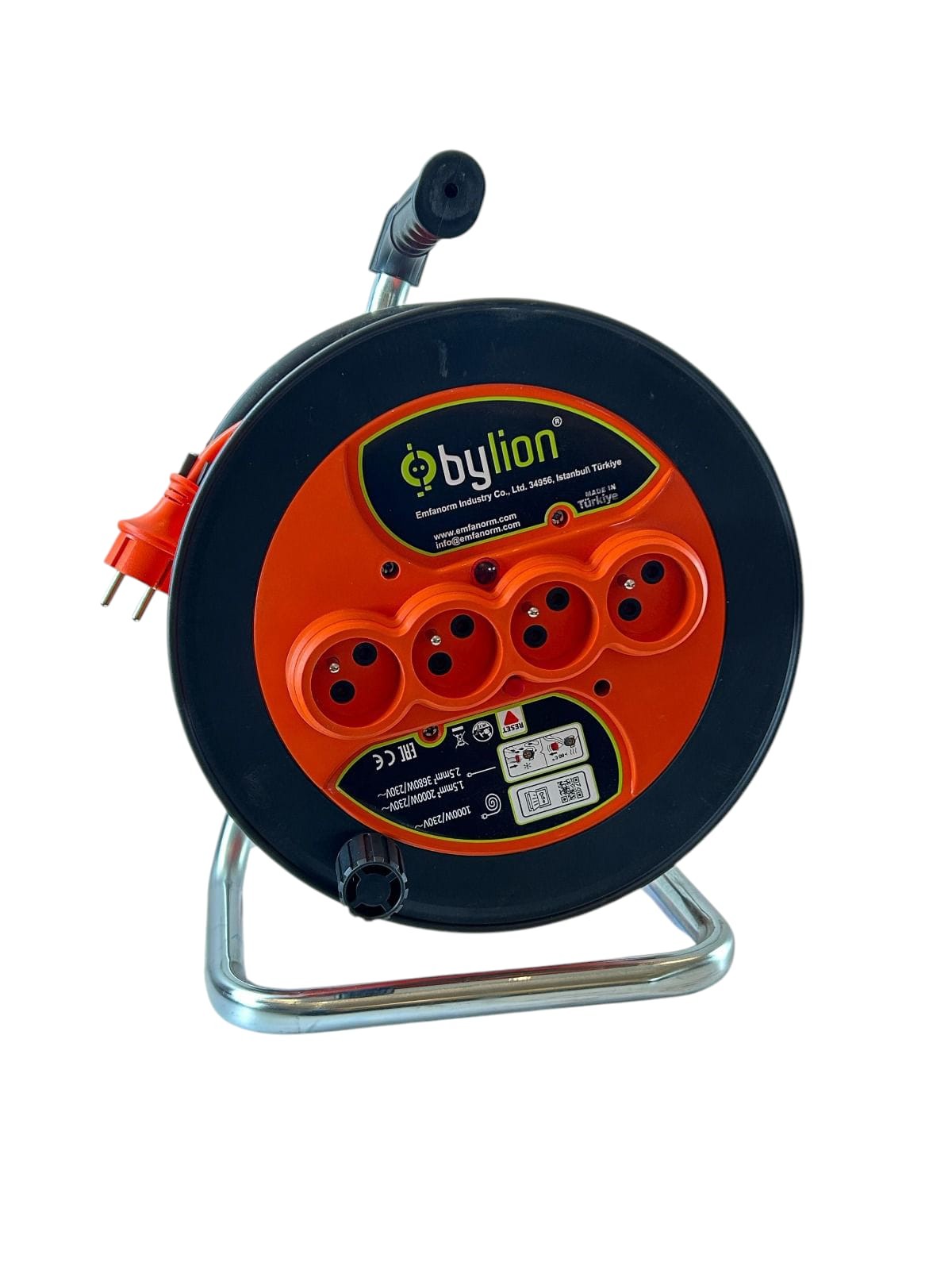 Bylion 50 Metre 3x1,5 Kablolu Seyyar Makaralı Işıklı 4'lü Uzatma Kablosu