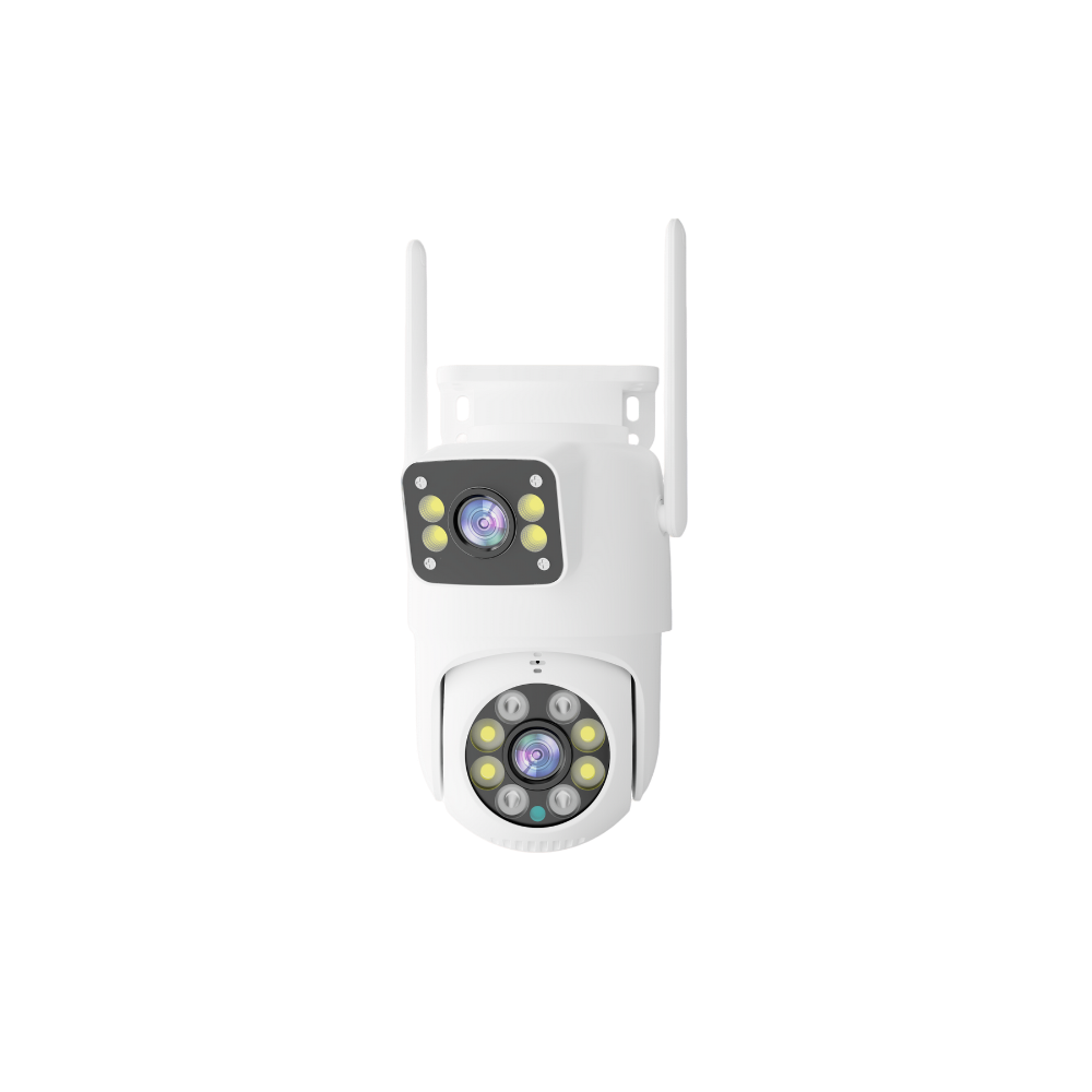 Cenova 4MP Çift Lensli WiFi PTZ Kamera, yüksek çözünürlük, akıllı izleme ve çift lens teknolojisi ile donatılmış, ev ve iş yerleri için ideal bir güvenlik çözümüdür. 4MP 1/3" CMOS sensörü, yüksek kaliteli görüntüler sunarak detayları net bir şekilde yakalar.