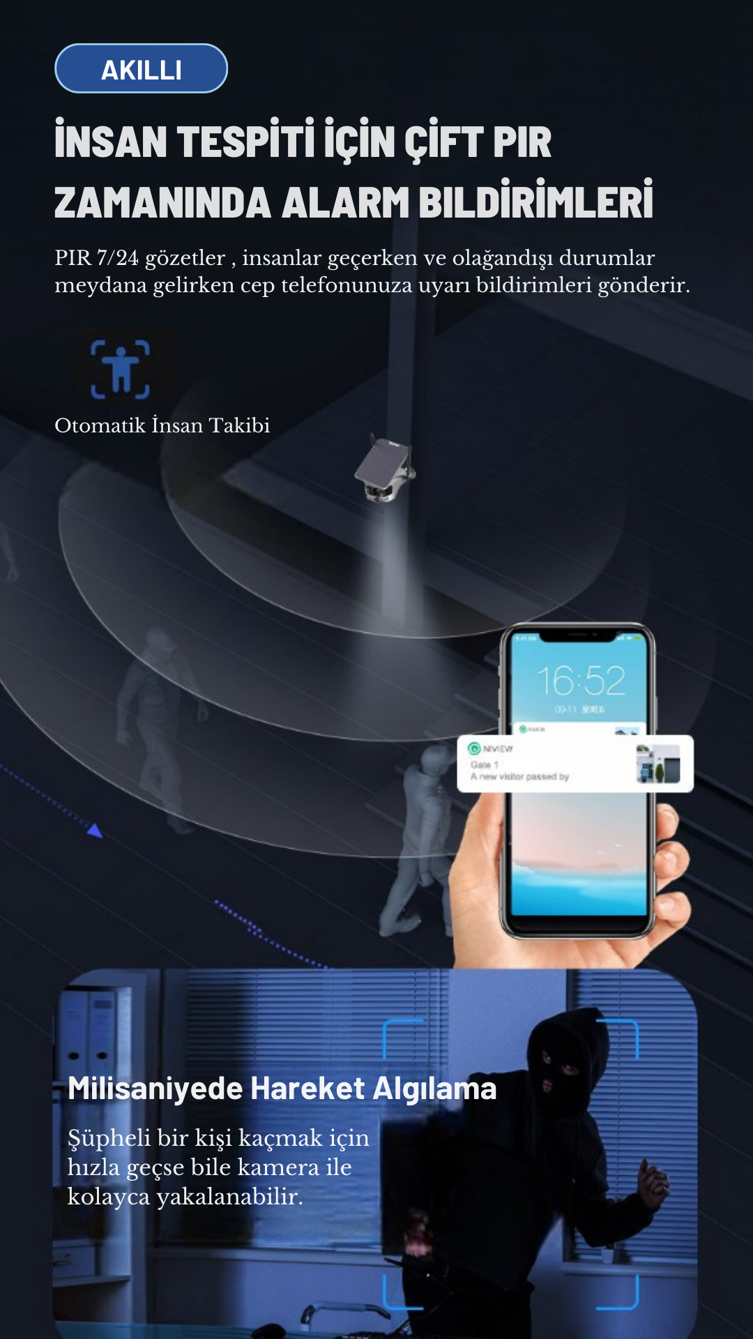 Hareket Algılama, İnsan Algılama , Akıllı Gece Görüş,Çift Yönlü Ses,
