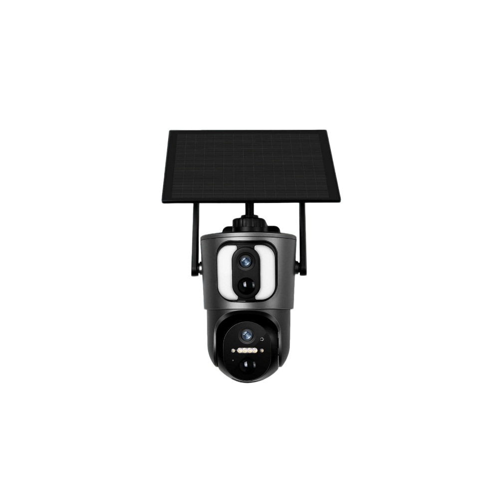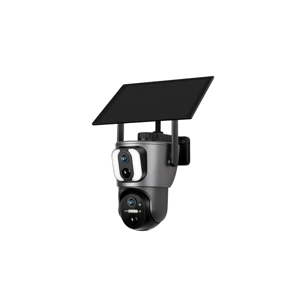 GSM şebekesinin internet hattının çektiği her noktada elektrik ve kablo bağlantısına gerek kalmadan kullanılabilir güvenlik kamerası. 180° Panaromik Çift Lensli 4K Çözünürlüklü Kamera
