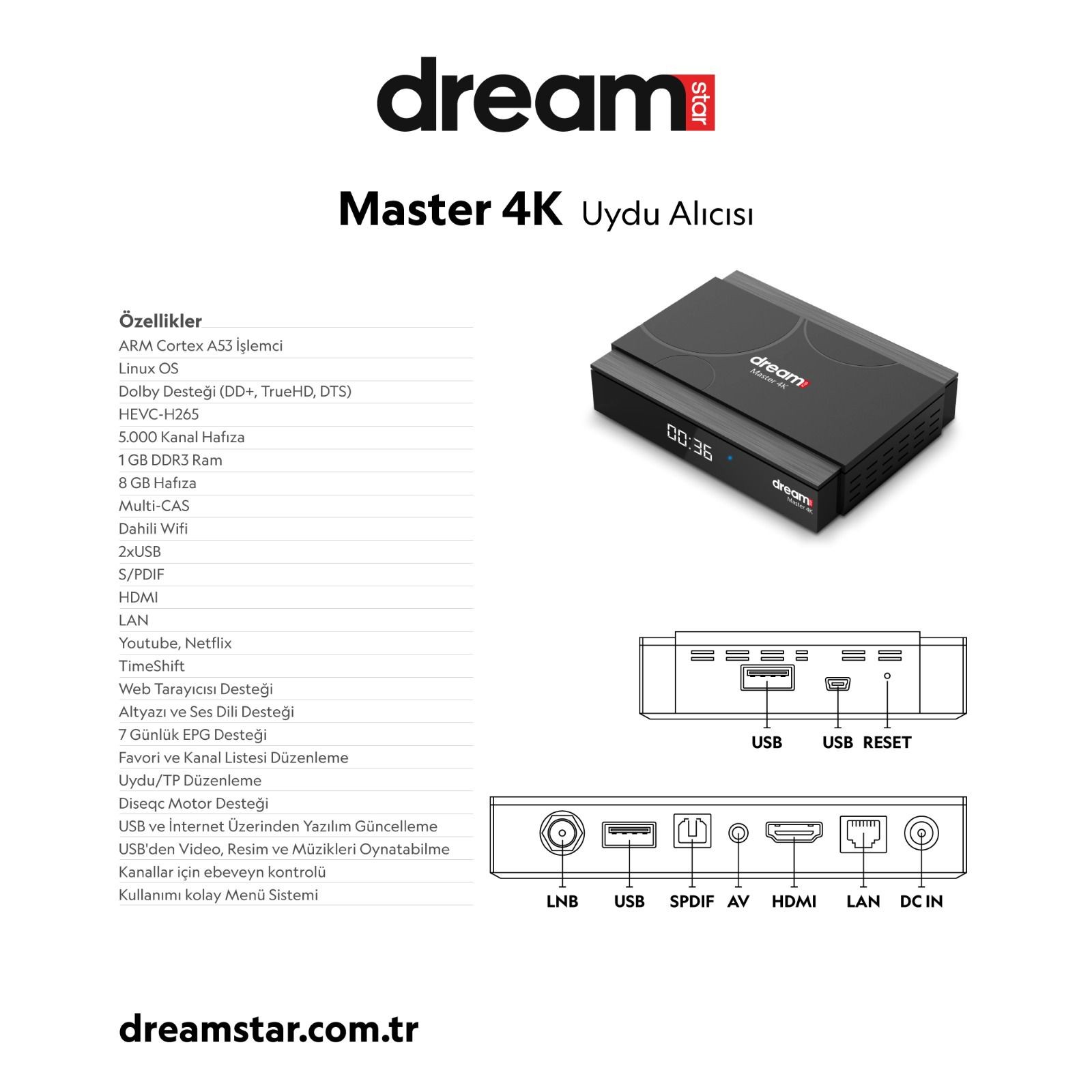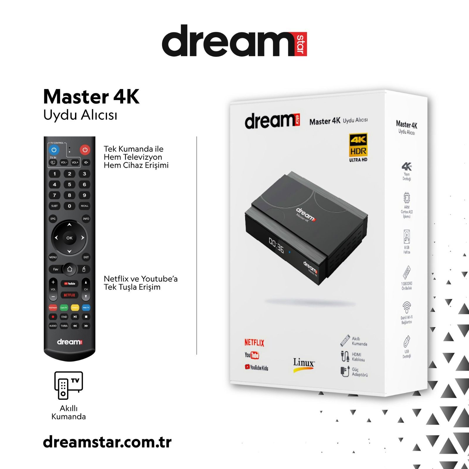 4K uydu alıcısı, Dreamstar master 4k, en iyi uydu alıcısı, IPTV destekli uydu cihazı, 4K HEVC uydu alıcı, online uydu alıcısı satın al, Dreamstar 4K özellikleri, Wi-Fi uydu alıcı, full hd uydu alıcı önerisi, smart uydu alıcısı