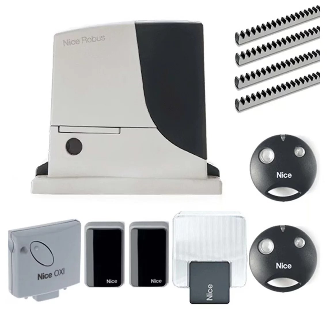 Nice Robus 1000 kayar kapı kit Kit İçeriği 1 Adet Nice Robus 1000 Otomatik Kapı Motoru 1 Takım Nice EPMB Emniyet Fotoseli 1 Adet Nice ELDC Flaşör Lamba 2 Adet Nice Kumanda (SM2) 1 Adet Nice OXİ Kumanda Alıcısı 4 Metre Kremayer Dişli Çelik 30X8 MM.
