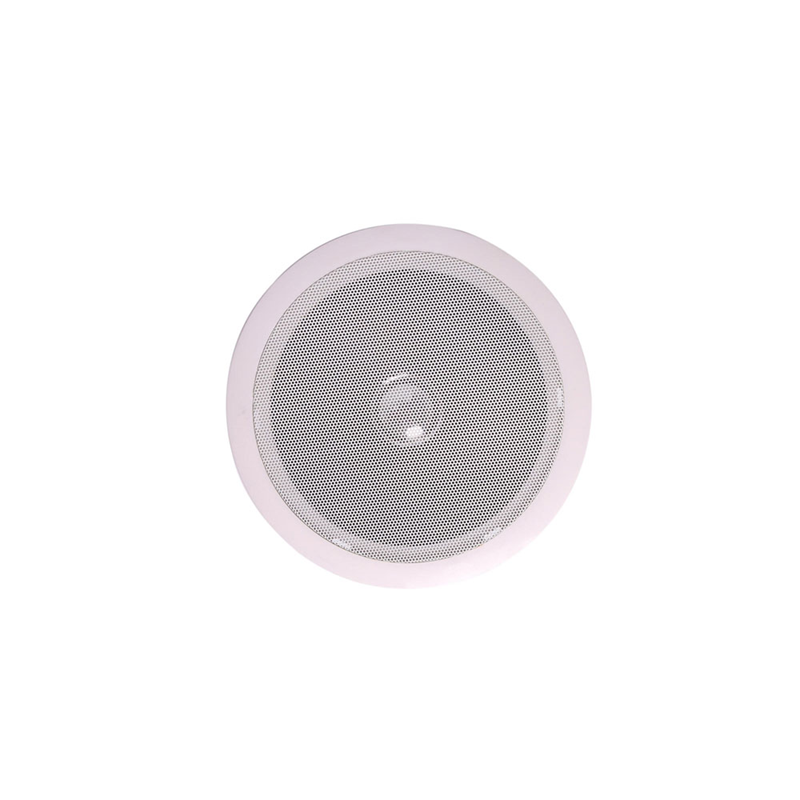 Pakette bulunan 2 adet tavan tipi trafolu hoparlör, beyaz – alçıpan uyumlu yapısıyla mekanın estetiğini bozmadan homojen bir ses dağılımı sağlar.
