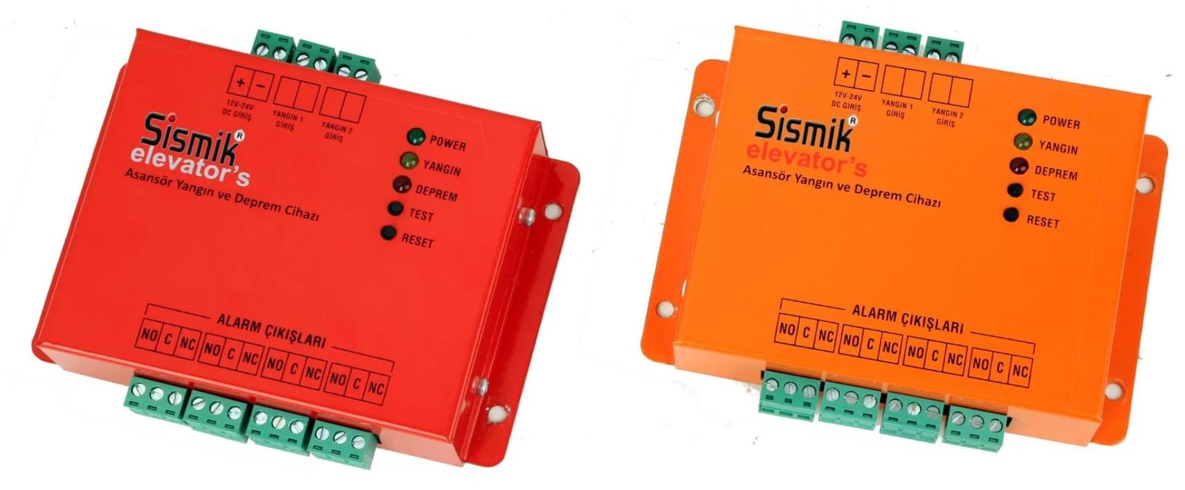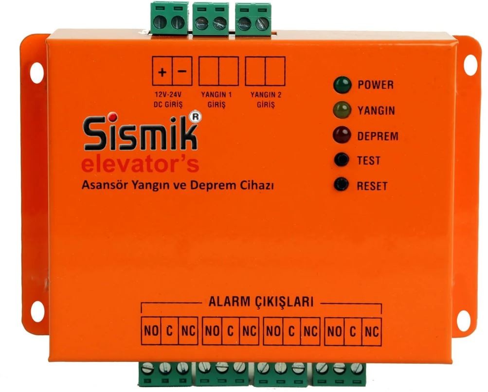 SİSMİK elevator's ASANSÖR DEPREM UYARI VE YANGIN ALARM CİHAZI TS 12884 standardına göre algılama , X,Y,Z - 3 Eksenli algılama, TS 12884 standardına göre Röle çıkışları, Yangın Alarm ve Yangın Buton girişleri, LED Gösterge, Sesli ve görsel uyarı özelliği, Yangın Sensör girişi, Acil stop buton girişi,