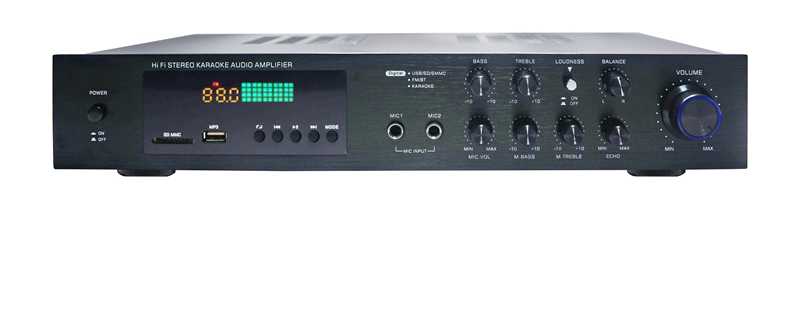 TKM 300S, toplam 300 Watt güce sahip, Bluetooth, USB/SD medya oynatma, stereo çıkış, mikrofon girişi ve şık tasarımlı ön paneliyle hem ev hem de ticari mekanlarda kullanılabilen güçlü bir stereo mikser amfi / amplifikatör modelidir.