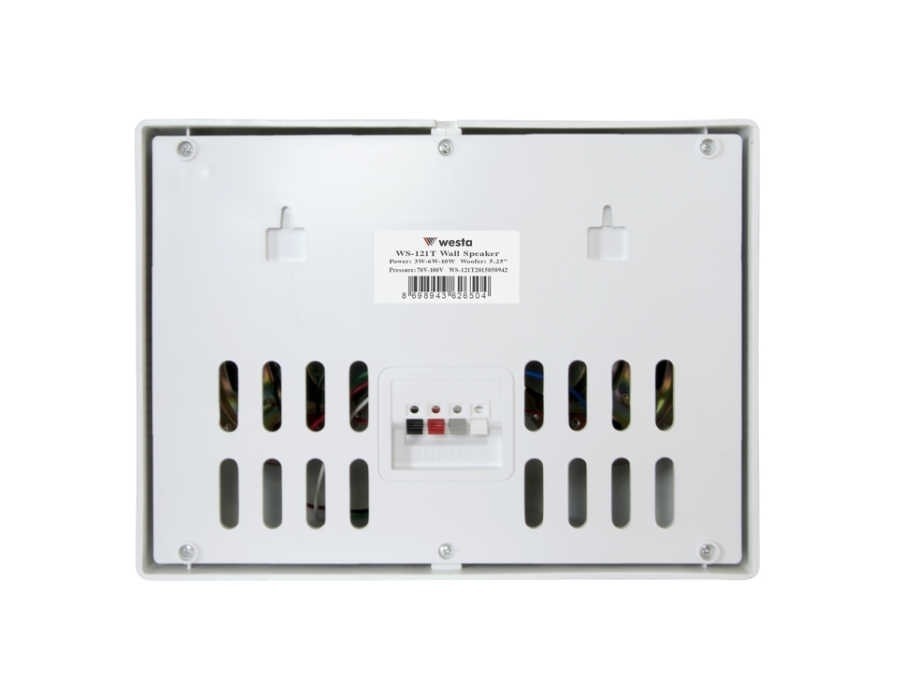 Westa WS-121T - 13cm Çift Yönlü 10W 70-100V Trafolu Sütun Hoparlör Trafolu, Çift Yönlü Duvar Tipi Hoparlör Hoparlör : 2 X 5" 12 cm 8 Ohm Trafo : 2,5W / 5W / 10W - 100V Duyarlılık: 91 dB Frekans Tepkisi : 90Hz - 16KHz Dış Ölçüler : 290 X 215 X 130 mm
